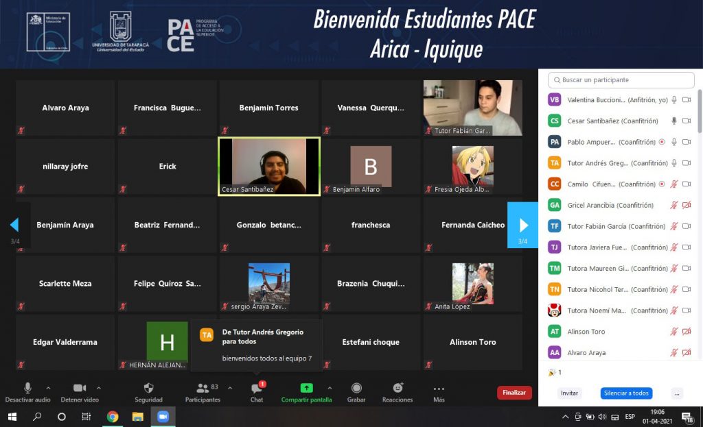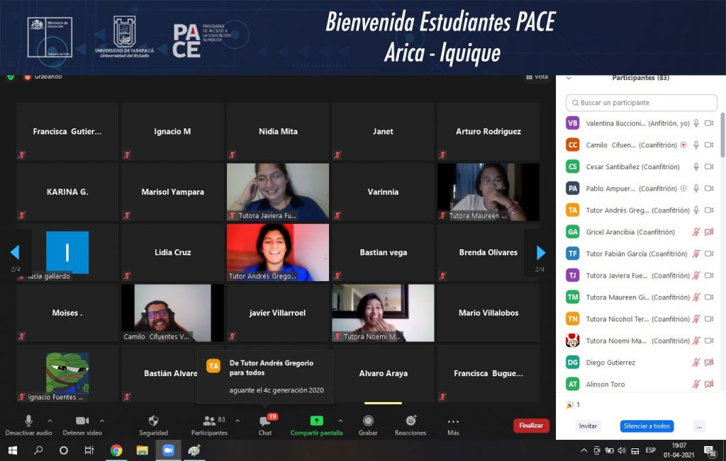 Actividad llevada a cabo vía remota en Arica e Iquique, contó con la participación de estudiantes, familias y el equipo PACE de la Universidad de Tarapacá.