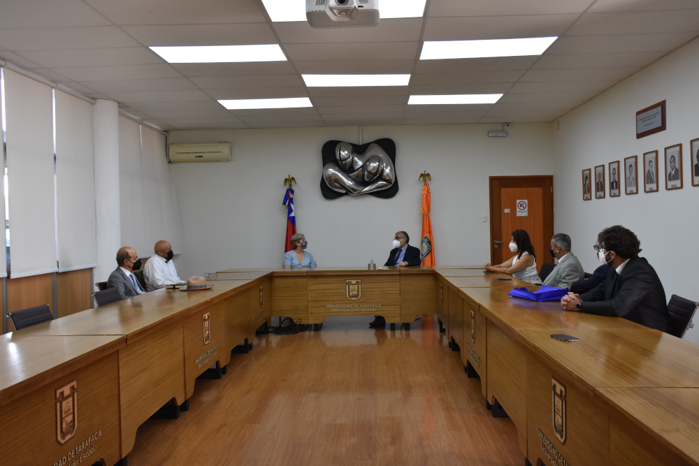 En una cita que buscó fortalecer los lazos entre Chile y Gran Bretaña, la Embajadora de ese país en Chile, Louise De Sousa, realizó este jueves 24 de marzo, una visita protocolar al Rector de la Universidad de Tarapacá, Dr. Emilio Rodríguez Ponce. A la reunión asistió también el Director General de Gabinete, Sergio Medina Parra, la Vicerrectora de Desarrollo Estratégico, Dra. Jenniffer Peralta Montecinos, el Director de Investigación, Postgrado y Transferencia Tecnológica, Dr. Rodrigo Ferrer Urbina, el Director de Relaciones Internacionales, Dr. Eugenio Doussoulin Escobar y el Director del Departamento de Idiomas Extranjeros, Dr. Justo Gallardo Olcay.