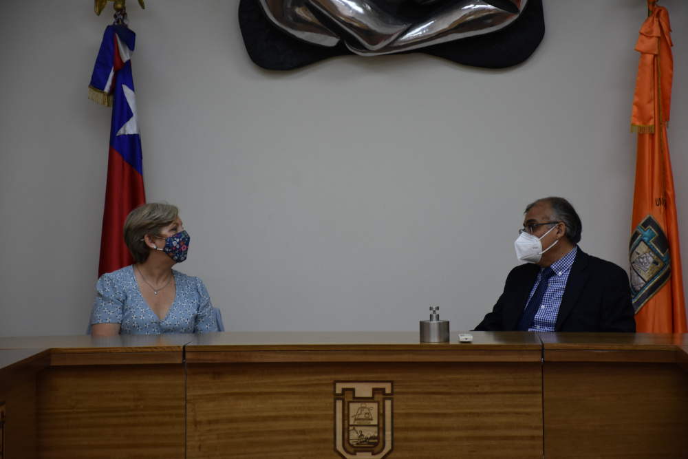 La embajadora, quien estuvo acompañada por el Cónsul Honorario de Gran Bretaña e Irlanda del Norte en Arica, Joaquín Álvarez Figueroa, manifestó que para su país es importante generar vínculos con las universidades, principalmente con las universidades de zonas extremas como la UTA, en materias de innovación, energías renovables, agricultura del desierto, entre otros, además de explorar oportunidades de colaboración entre la Universidad de Tarapacá y distintos centros académicos de Inglaterra.