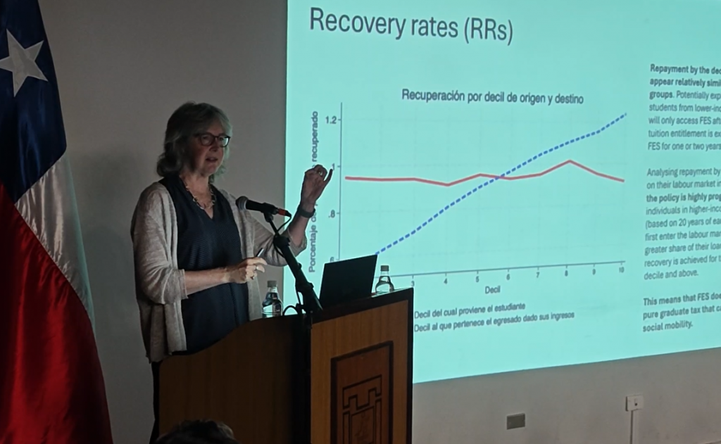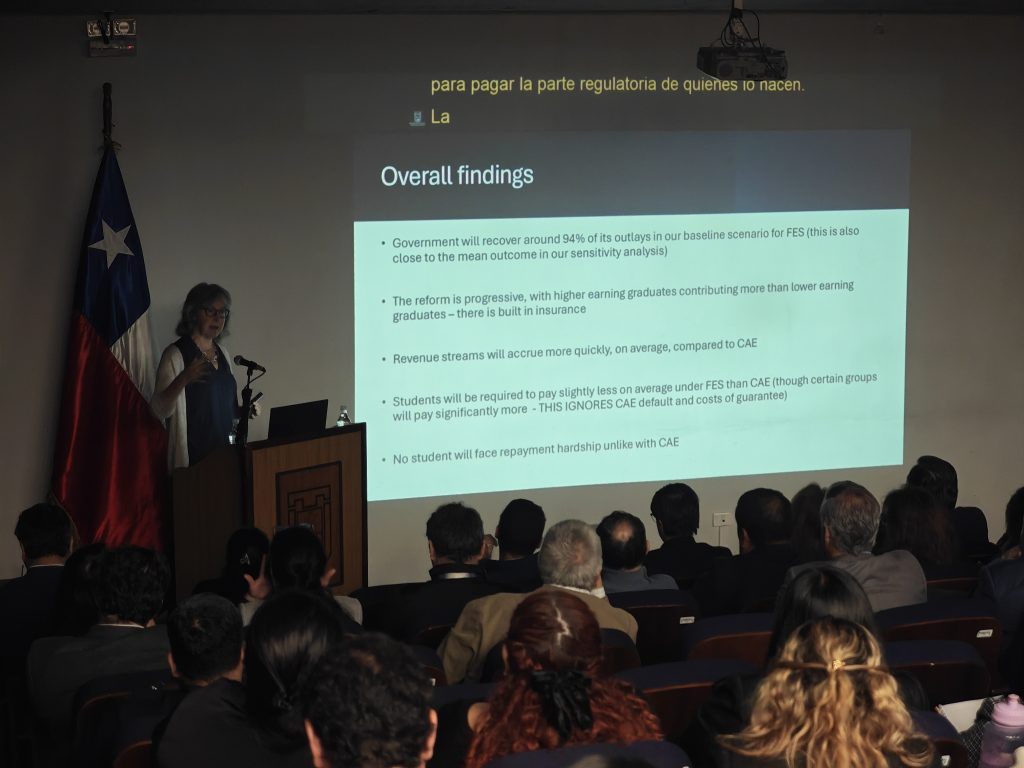 La presentación se basa principalmente en la investigación “The student loan reform in Chile: Simulating Users and Repayment Dynamics of the New Higher Education Financing Instrument (FES)”, liderado por la Dra. Dearden, con el Dr. Ríos y la candidata a PhD, Natalia Valdés, como co-investigadores. Se trata de un proyecto que fue financiado entre el parlamento chileno y la University College of London a través del programa Knowledge Exchange, cuyo principal objetivo es apoyar colaboraciones internacionales para el desarrollo de estudios especializados.