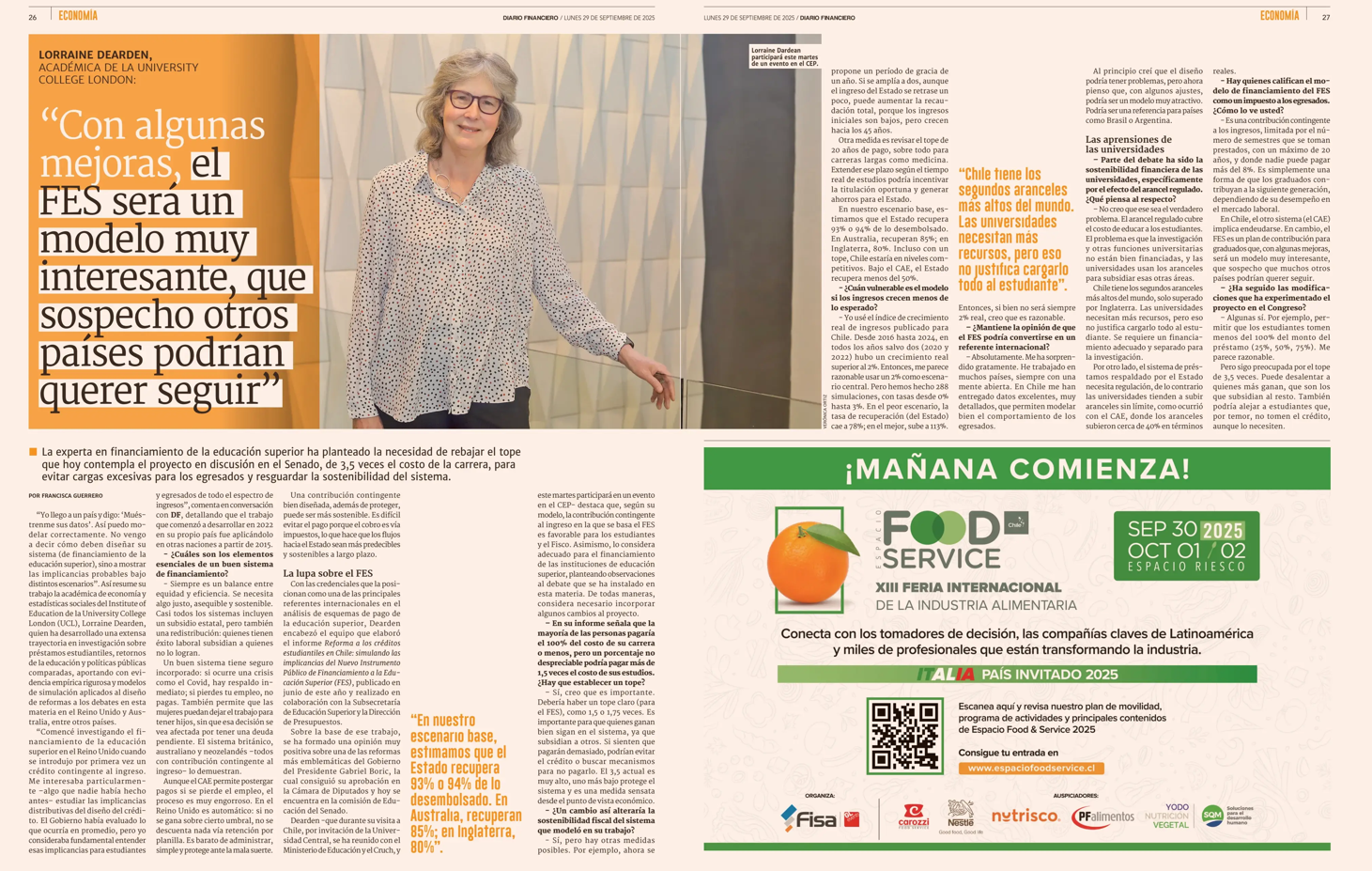 En una entrevista reciente con El Diario Financiero, la experta señaló que el modelo FES podría convertirse en una referencia para los sistemas de financiamiento a nivel internacional.