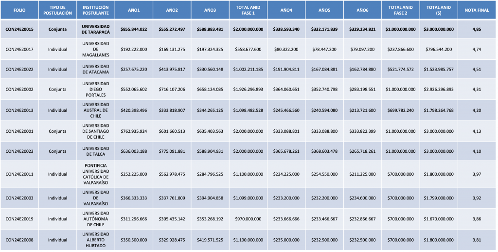 Tras culminar exitosamente la primera fase del programa, la Universidad de Tarapacá (UTA) y la Pontificia Universidad Católica de Chile (PUC) se adjudicaron la segunda etapa del concurso “Conocimientos 2030, etapa 2: Implementación del Plan Estratégico, convocatoria 2024” de la Agencia Nacional de Investigación y Desarrollo (ANID), obteniendo el mejor puntaje de postulación a nivel nacional entre las 11 universidades seleccionadas.