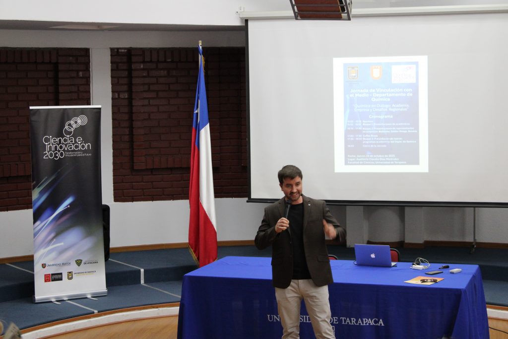 El Departamento de Química de la Facultad de Ciencias de la Universidad de Tarapacá (UTA) realizó la jornada de vinculación “Química en Diálogo: Academia, Empresa y Desafíos Regionales”, en el marco del Proyecto Ciencia 2030. La actividad tuvo como objetivo fortalecer los lazos entre la academia y el sector productivo, abordando desafíos regionales mediante la innovación en ciencias químicas y ambientales.