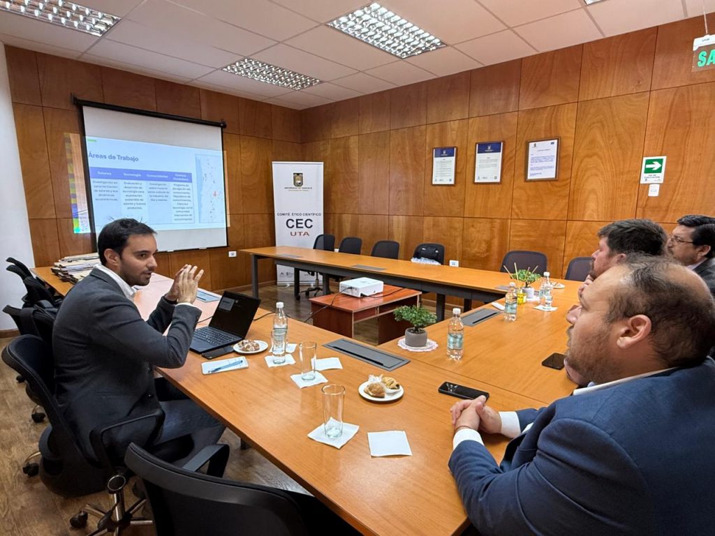 En el encuentro participaron el vicerrector de Desarrollo Estratégico de la Universidad de Tarapacá, Patricio Zapata Valenzuela; el director general de Investigación e Innovación, Dr. Ignacio Jessop Rivera, y el director de Planificación y Proyectos, Dr. Giuliani Coluccio Piñones.