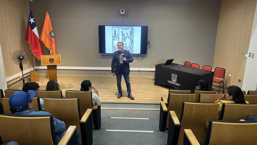 El seminario se estructuró en torno a dos exposiciones centrales. En primer lugar, el Dr. Alberto Díaz Araya, académico del Departamento de Ciencias Históricas y Geográficas de la UTA, presentó “Danzas Andinas en el Desierto: Trayectorias e influencias en las tradiciones e identidad del norte Chileno”. Seguidamente, de manera telemática, el licenciado Luis Sempertegui Miranda, fundador de la Entrada Folklórica Universitaria de la UMSA en 1988, expuso “Entrada Folklórica Universitaria: Patrimonio Cultural vivo e intangible de Bolivia”.
