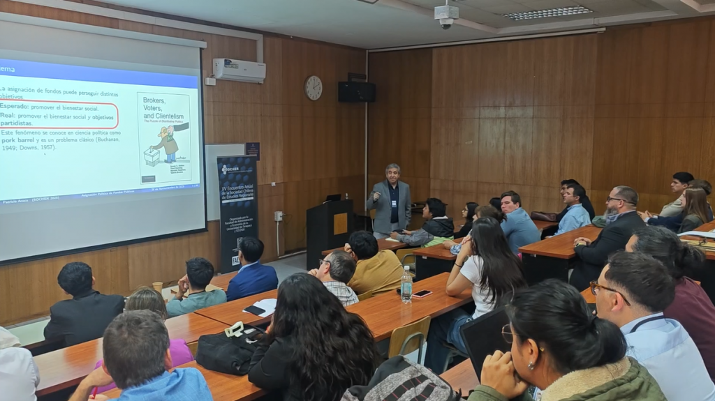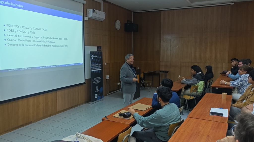 En este contexto, una de las ponencias magistrales realizadas durante el encuentro fue “Identificando controladores políticos en la asignación de fondos públicos: un análisis econométrico espacial” dictada por el profesor titular de la U. Andrés Bello, Dr. Patricio Arocas, quien indicó: “Nosotros tenemos una cantidad de recursos en el Estado que usamos, algunos muy eficientemente, y otros no tanto, entonces en aquellos que no usamos tan eficientemente, el mensaje es ‘podemos mejorar’”.