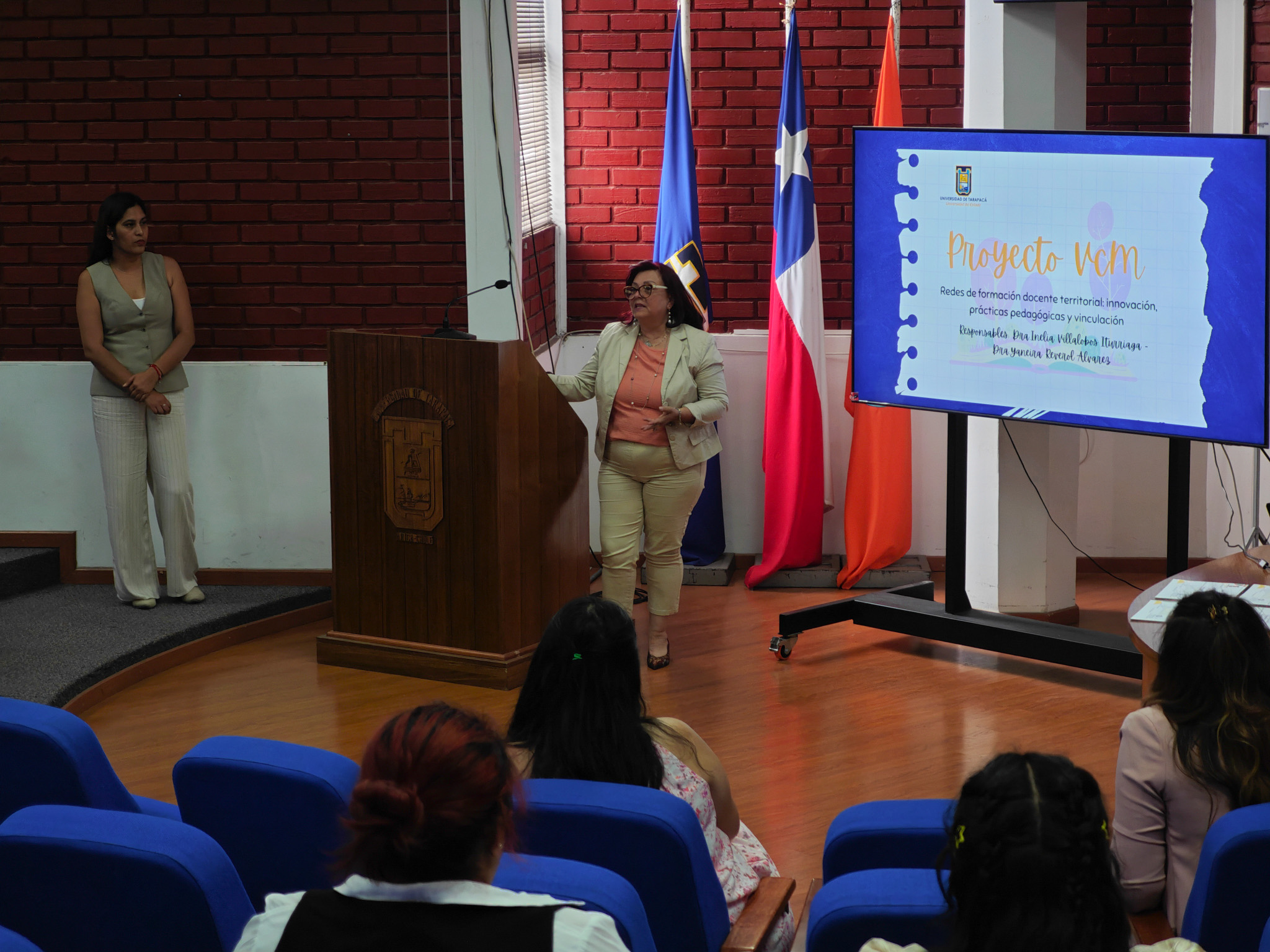 La jornada de cierre de la primera fase del proyecto de Vinculación con el Medio: “Redes de Formación Docente Territorial: Innovación, Prácticas Pedagógicas y Vinculación”, desarrollado por el Centro de Prácticas Pedagógicas de la Universidad de Tarapacá, fue dirigido por la Dra. Inelia Villalobos junto con la Dra. Yaneira Reverol, quienes compartieron aprendizajes y desafíos vinculados a la formación práctica de los futuros docentes. La actividad reunió a autoridades, docentes y funcionarios de gestión para examinar de manera conjunta cómo fortalecer los procesos formativos desde una perspectiva situada y colaborativa.