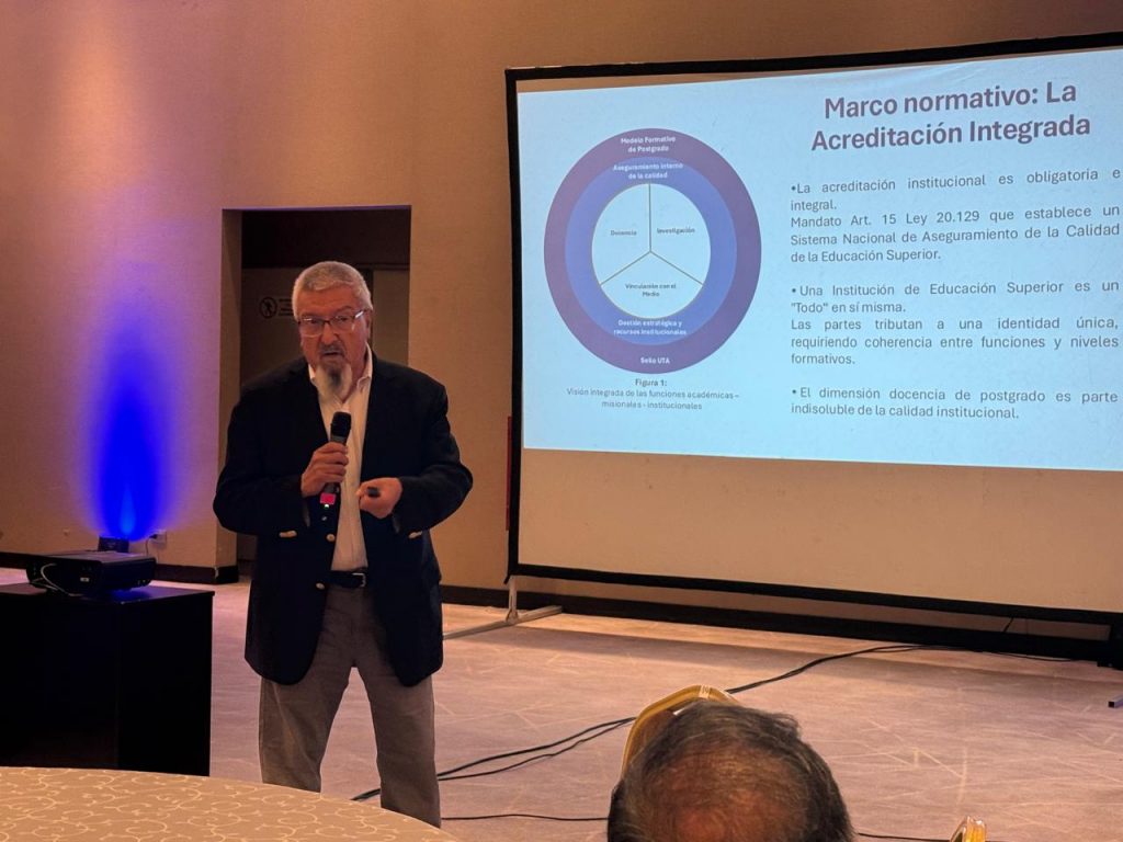 “Esta es una jornada donde damos una mirada de largo plazo a nuestra docencia, observando lo que está ocurriendo hoy en el sistema educativo. La docencia siempre está vinculada con todas nuestras actividades fundamentales: la investigación, la vinculación con el medio y el postgrado”, señaló el Rector Rodríguez Ponce.