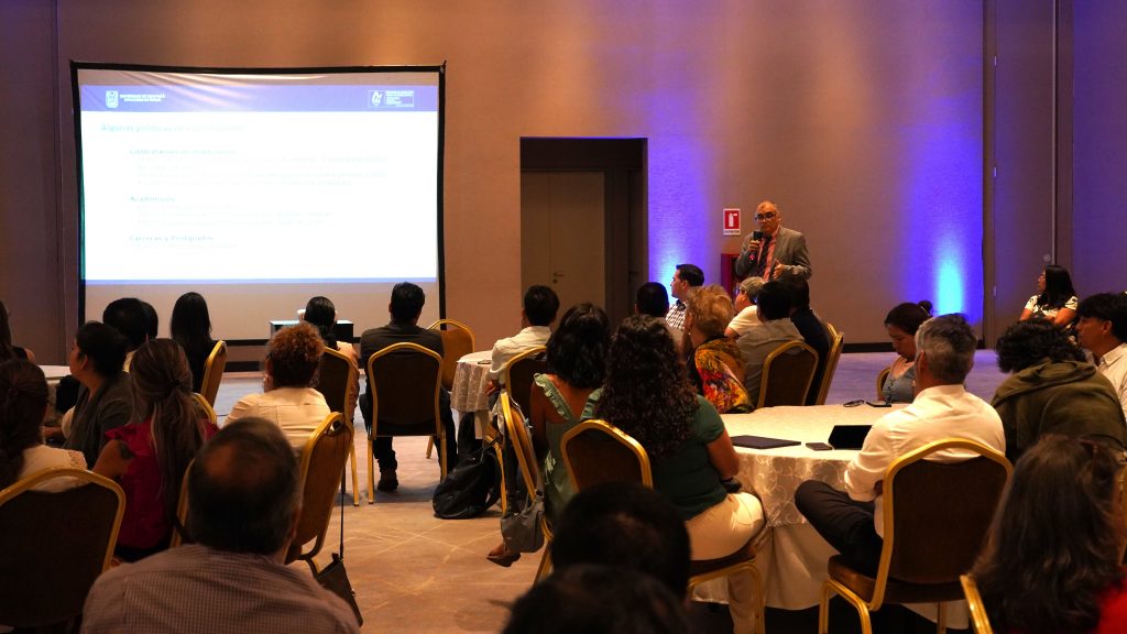 • Bloque 1: Docencia y Trayectoria Formativa: Incluyó exposiciones sobre la gestión curricular en pregrado y postgrado, la implementación del MEI, la trayectoria estudiantil y el rol de la comunidad educativa. Destacó la participación de la Dirección General de Docencia de Pregrado, la Dirección General de Docencia de Postgrado, Registraduría y la Dirección de Asuntos Estudiantiles.