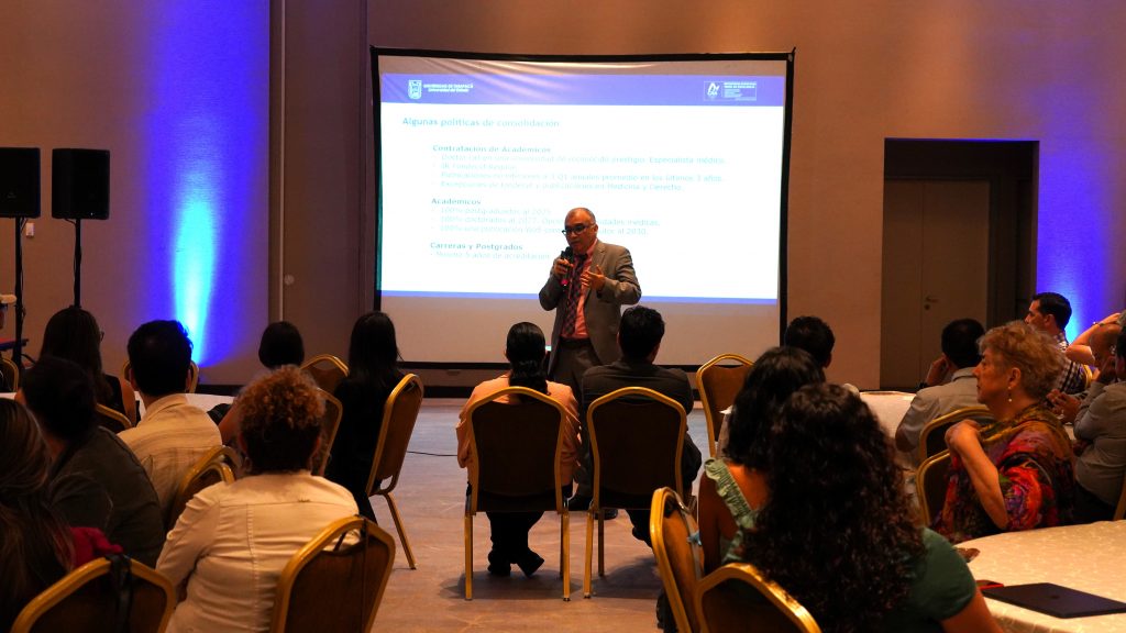 La actividad, realizada en el hotel Antay, convocó a todo el estamento académico de las nueve facultades de la Universidad. En la ocasión, el Rector Dr. Emilio Rodríguez Ponce, presentó los principales ejes institucionales que permiten proyectar con claridad la hoja de ruta de la UTA y los elementos críticos que deberá enfrentar en 2026, año que marcará el inicio de un nuevo período presidencial y rectoral.