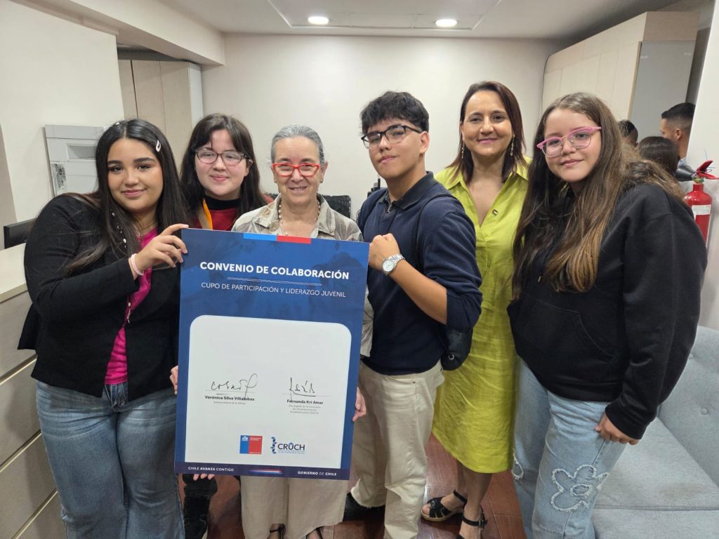 “Para nosotros es una gran noticia. Me motiva mucho saber que se va a reconocer todo el trabajo y las actividades que realizamos como consejeros en todo el país”, sostuvo Florencia Quezada, integrante del Consejo Consultivo de Maipú y una de las cuatro estudiantes que participó este lunes 26 de enero en la ceremonia de firma simbólica del convenio entre el Consejo de Rectoras y Rectores de las Universidades Chilenas (CRUCH) y la Subsecretaría de la Niñez que crea el primer cupo CRUCH de “Participación y Liderazgo Juvenil”.