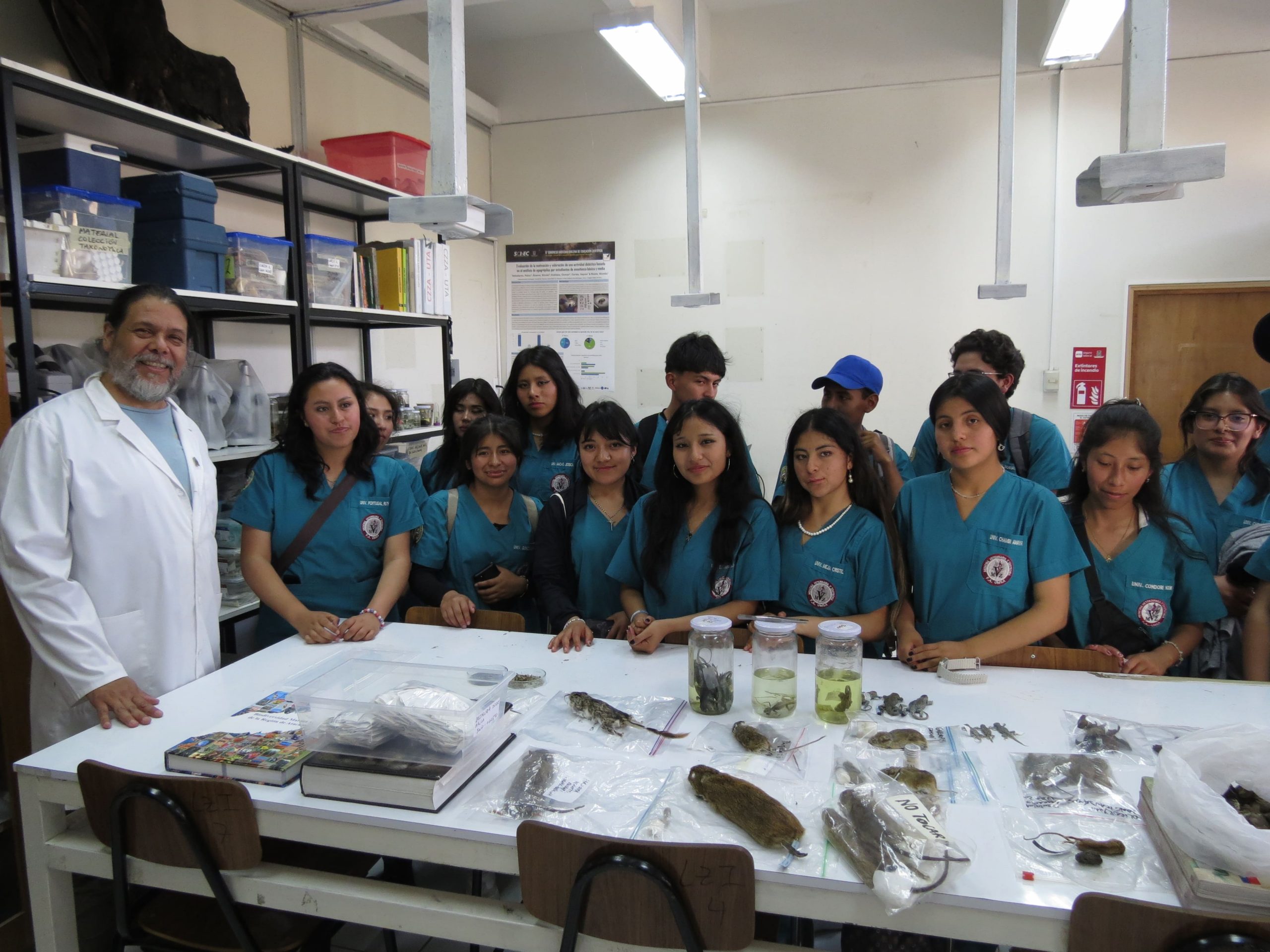 La jornada prosiguió con un conversatorio abierto a estudiantes de ambas universidades, en el que académicos de la UMSA y la UTA compartieron experiencias sobre colaboración universitaria en la zona transfronteriza. Posteriormente, el académico del Departamento de Biología, José Luis López Cepeda, guio a la delegación en una visita a la ex Isla El Alacrán, uno de los ecosistemas costeros más singulares de la región. Por la tarde, los visitantes recorrieron los laboratorios de Zoología Integrativa a cargo del Dr. Pablo Valladares Faundez; de Biología Molecular, a cargo de la Dra. Marcela Gallardo Córdova; y de Química, a cargo de la Dra. Libertad Carrasco Ríos y el Dr. Cristian Castro Rodríguez, todos pertenecientes a la Facultad de Ciencias de la Universidad de Tarapacá.