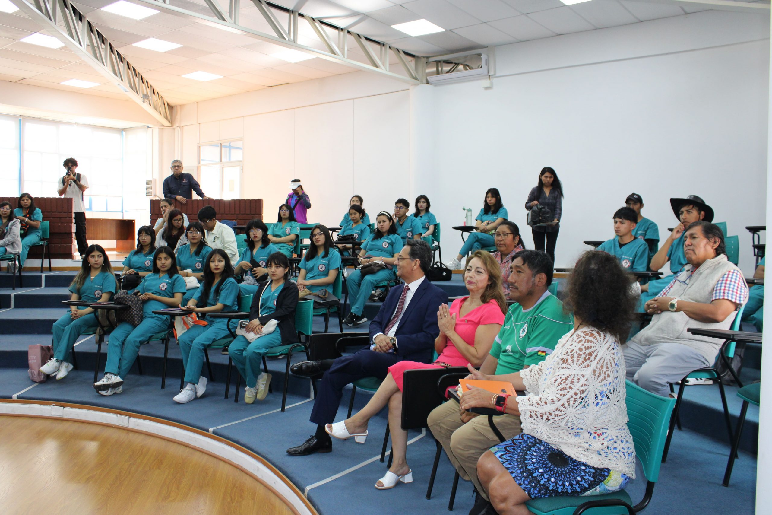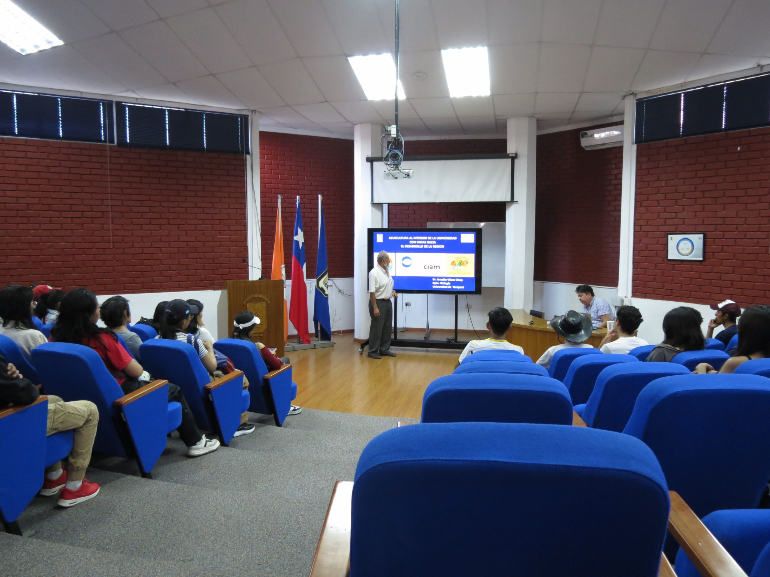 La delegación boliviana llegó a Arica el miércoles 15 de abril, tras un extenso viaje desde La Paz, siendo recibida con un recorrido por el Campus Saucache y una charla introductoria a cargo del académico de la Facultad de Ciencias, Dr. Arnaldo Vilaxa en la Sala Ovidio Sotomayor.